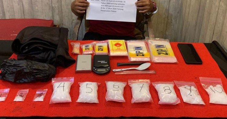 Selain sabu, petugas juga mengamankan sejumlah barang bukti pendukung lainnya berupa dua timbangan digital, plastik klip bening berbagai ukuran, sedotan dan sendok sabu, satu unit handphone Android, serta perlengkapan lain yang digunakan untuk aktivitas peredaran narkotika.